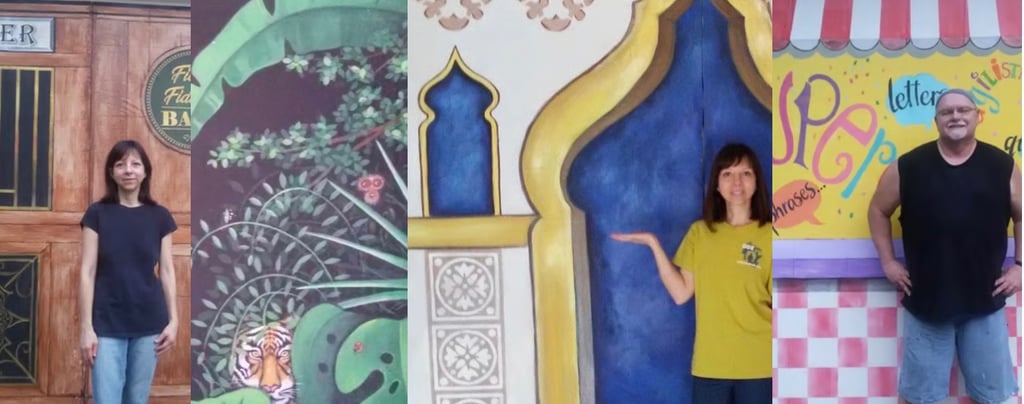 Over the years, we worked on productions like Aladdin, Annie, Jungle Book, and Mary Poppins. Each play came with its own imaginative world, and we loved the challenge of bringing those settings to life in paint.